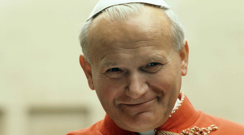 San Giovanni Paolo II (Wadowice, 18 maggio 1920 – Città del Vaticano, 2 aprile 2005) ora in cielo, in compagnia di Dio e della Beatissima Vergine Maria cui tu dedicasti tutto te stesso: "Totus Tuus": «Tuus totus ego sum, et omnia mea tua sunt» («Sono tutto tuo, e tutto ciò che possiedo appartiene a te»).